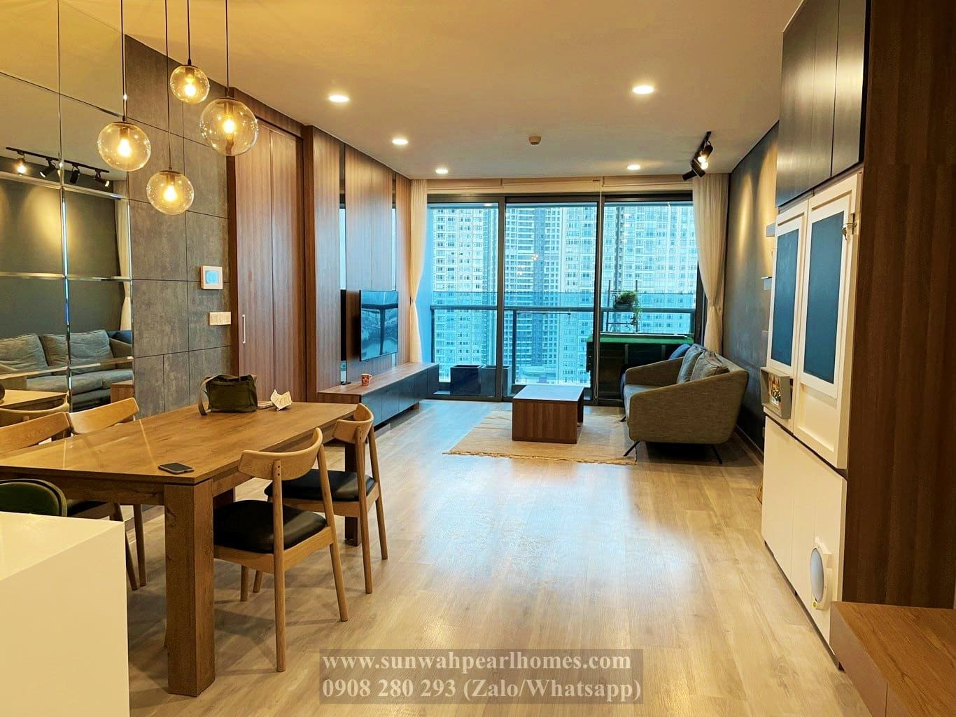 Cần cho thuê căn hộ Sunwah Pearl thiết kế hiện đại, lầu cao, nội thất cao cấp. Tọa lạc tại Golden House, căn góc, layout 3 phòng ngủ, 2 toilet, phòng khách, bếp và phòng giặt