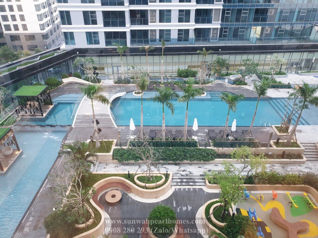 Cho thuê căn hộ Sunwah Pearl 3 phòng ngủ, view hồ bơi, không gian rộng, nội thất đầy đủ.